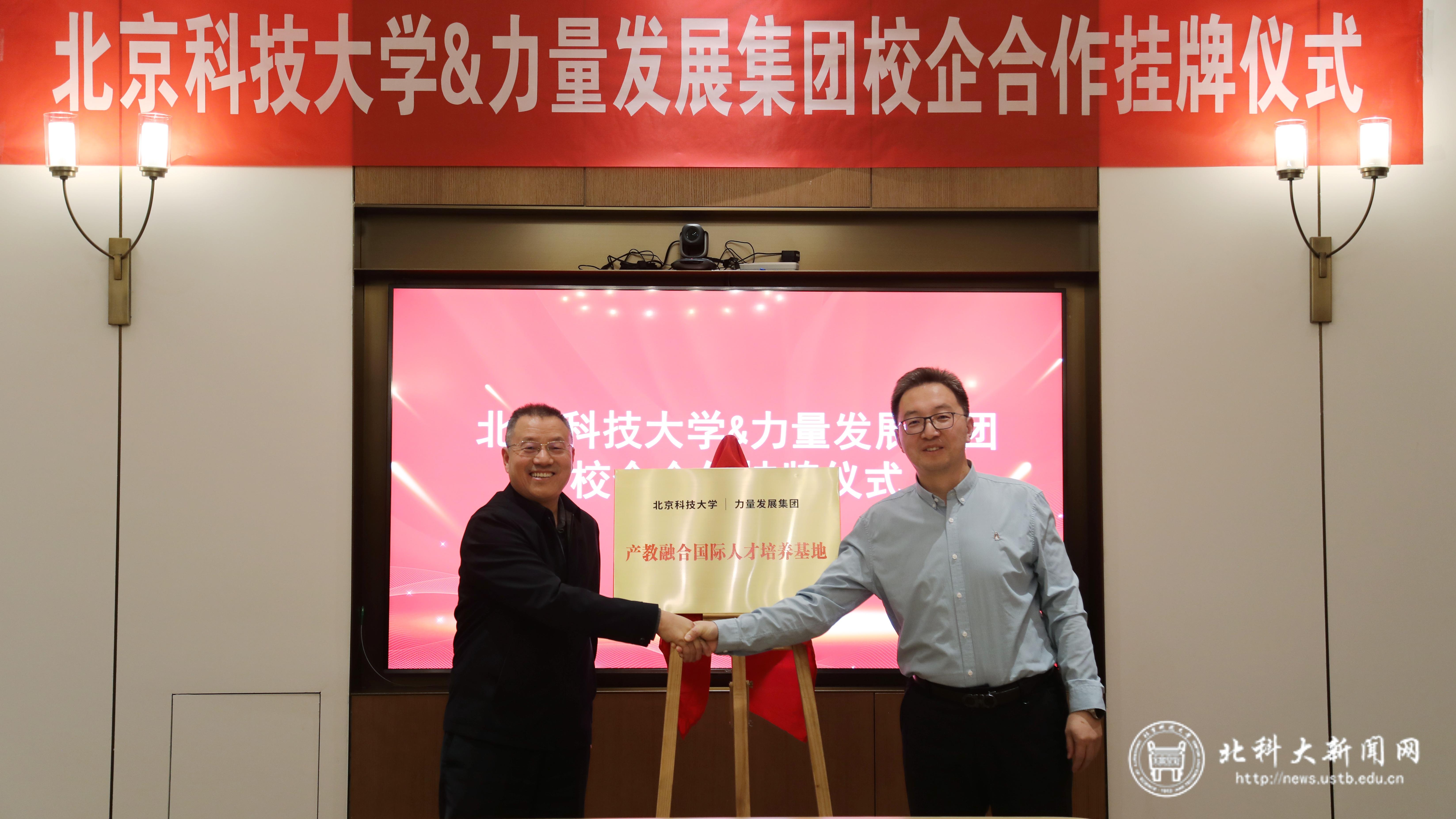 12月3日,武贵龙一行在鄂尔多斯市参加学校与力量发展集团“产教融合国际人才培养基地”战略合作揭牌仪式,并与力量发展集团总裁李波等座谈交流。武贵龙与李波共同揭牌。